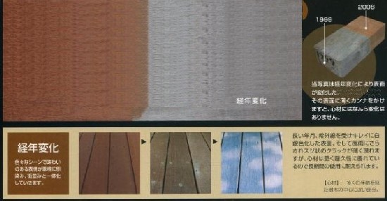 そして、風雨にさらされスジ状のクラックが薄く現れますが、心材は堅く耐久性に優れます。