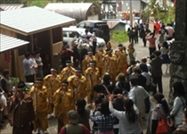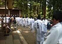 渡御の儀とは、天八意思兼命(あめのやごころおもいかねのみこと)の御子神になる天表春命(あめのうわはるのみこと)が宝光社から、天八意思兼命の鎮座する中社へと七年毎に渡り、父子のご対面を果される儀式である。