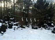 胎内清宏園の駐車場に車を止め、10分ほどの遊歩道を歩く。雪が少し残る季節だったが、この雰囲気もいっそう神々しさを感じる事が出来る。