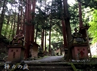 長閑な山間部に位置する。民家の間を縫って進んで行くと、それまでとは全く違った空間へ誘われる。山の奥へと続く参道は、一歩一歩進む度に神聖な雰囲気が徐々に色濃くなって来る。招かざる客を押し返すような圧倒的な空気をも感じる。訪れた日は雨が降っていた。が、しかし修験道の面影を感じるには丁度良かった様に思う。晴れた日は、また違った感動を与えてくれるのだろう。水の音を聴き、木々の隙間を縫う風を感じる。人が忘れかけた何かが此処には存在する。
