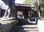 目の前に亀沢の船石という巨石があり、ここから社名の船形が付いたと言われている。確かにこの巨石からはその形を想像できるが、上流から流れて来るときに割れてこの形になったのだろう。まさに自然美。境内には神門があり手前には石を抱え込んだまま成長した見事な巨木、背後には苔むした巨石があり圧倒される。そしてコナラ科のカシの木の巨木もあり、どんぐりがたくさん落ちていた。