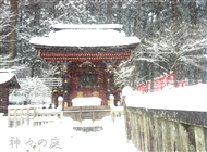 神門手前には見事な大鳥居がある。やはり丸太から造られた鳥居は存在感があり素晴らしい。境内は神楽殿、拝殿、本殿の他にも摂末社が多くある。興味深いところとして本殿背後にある恵比寿社ではないだろうか、大黒様及び恵比寿様をお祀りする。なによりも、今回雪の日にこの神社に参拝できたことに感謝。