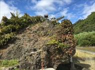 | この巨石は、あたかも老婆が、あごを支えている姿に似ているところから、姥婆石と名付けられている。 |