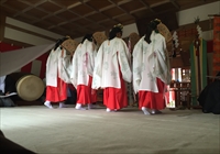 拝殿にて厳かに巫女舞が奉納された。4人の巫女の皆さんは、小学校6年生。今回最後の巫女舞になるという。きっと、この善き経験を胸に、賢く心優しい女性に成長されることでしょう。